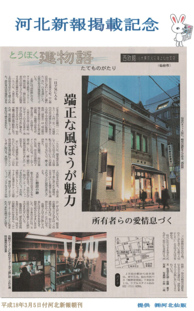 時代に応じて手を加えられながら、街中に生き続ける「西欧館」。仙台の戦前の面影を伝える文化遺産は、建物を愛する人々の熱い思いに支えられている。