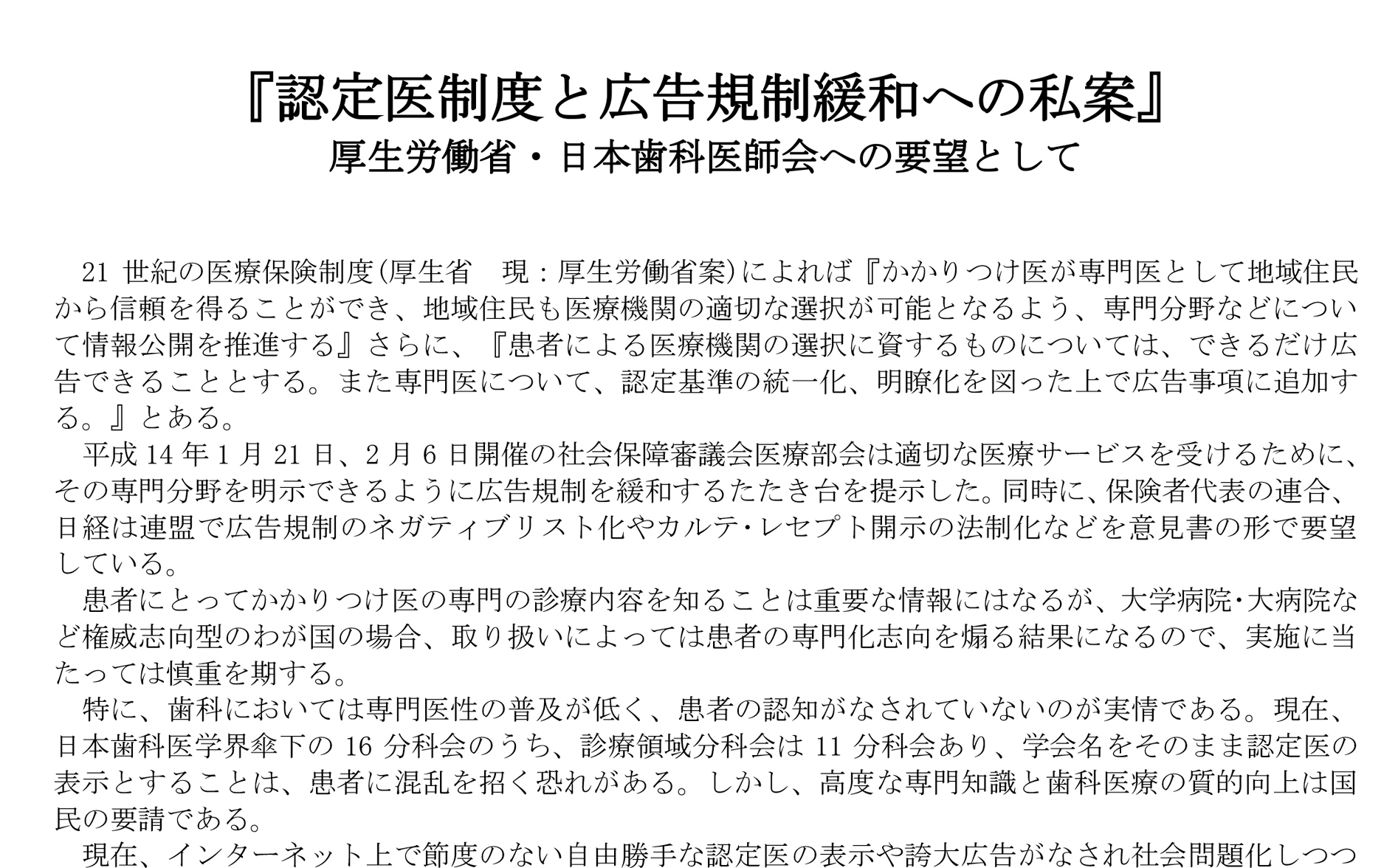 また、医療がかかえている今日的課題のひとつに医療紛争問題があり、医療現場における医療者の関係に新たな局面を迎えている。最近の傾向として事故が無くても紛争になる場合があり、医療技術が高度化し、疾病構造の多様化によって医療行為そのものが医原性疾患(Iatrogenic Disease)を生み出しかねない状況になっていきている。わが国が多くの有病者をかかえつつも世界一の長寿が達成されていることは、健康と長寿がうらはらになっていることを示唆しており、歯科を受診する患者の多くが、何らかの基礎疾患を持つ有病者(Compromise Host)であることを改めて認識する必要がある。医者が聖域といわれた論拠として、患者を傷つける権利があったが、それはもはや過去のものになりつつある。このような社会的背景をふまえて、歯科医師は治療行為による医原性疾患や医療過誤を引き起こさないような診療システムの確立が求められている。