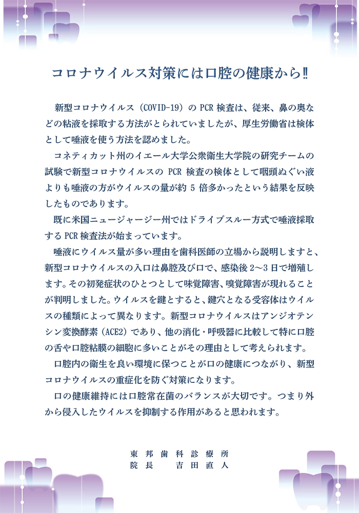 当院でレーザーによる麻酔法をはじめて伝授されたのは昭和大学歯学部第1保存学講座の松本光吉教授からで、その後もレーザー治療に関していろいろとご教示いただいており この場を借りてお礼申し上げたい。